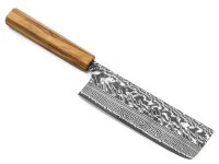 . Die Ummantelung besteht aus Nickel Damast in 62 Lagen, insgesamt hat die Klinge also 63 Lagen. Finish: Optisch wird die Klinge natürlich durch die Damast Lagen dominiert. Um einen zusätzlichen Schutz und ein besonderes Design zu erzielen, sind diese Messer brüniert, was die edle Optik unterstreicht. Griff: Diese Serie bieten wir mit zwei unterschiedlichen Griffen an. Ein Griff ist aus italienischem Olivenholz, gewachst und achteckig (Oktagon) geformt. Der andere Griff ist aus japanischem Quittenholz, achteckig (Oktagon). Beide Griffe vermitteln eine großartige Haptik und liegend hervorragend in der Hand.