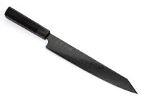 Japanische Kochmesser bestehen aus äußerst harten Stählen und sind dünner geschmiedet und geschliffen als ihre europäischen Pendants. Einige dieser Messer verfügen über sehr fein geschliffene Schneidlagen, wodurch sie empfindlicher sind und sich lediglich für weiches Schnittgut eignen. Bitte beachten Sie diesbezügliche Informationen in den Produktdetails. Insbesondere Messer mit sehr dünner Schneide und Hohlschliff neigen zu Ausbrüchen an der Klinge. Diese sind hervorragend für feine Schnitte von weichem Schnittgut geeignet, sind aber mit entsprechender Vorsicht zu verwenden. Beim Schärfen auf einem Schleifstein entsteht in der Regel ein Winkelschliff, wodurch die Schneide mit der Zeit stabiler wird.