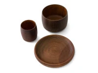 Diese Produktserie umfasst moderne japanische Becher, Schalen und Servier-Tablets die oft im Set als Speiseschalen, als Suppenschalen, Reisschalen, Müslischalen, für kalte und heiße Getränke und natürlich für die berühmte kleinen Leckereien, die zum Tee oder auch Kaltgetränken serviert werden, Verwendung finden. Begeistert schon die optische Ästhetik der wundervollen, handwerklich gefertigten Turari-Produkte, so ist man förmlich hingerissen, wenn man sie in den Händen hält. Das schöne Kirschbaumholz, die perfekt ausgewogene Form und die schmeichelhafte Oberfläche steigern den Genuss von feinen Getränken und Speisen. Der Designer Atsushi Sakai arbeitet seit Jahren mit Gato Mikio zusammen. Denn hier werden die Entwürfe handwerklich perfekt zu echten Produkten, die das Leben bereichern. „Kiji-Rokuro-biki“ nennt sich die traditionelle Bearbeitungstechnik, mit der in Yamanaka bei Gato Mikio Holzgefäße gefertigt werden. Schon beim Sägen wird ein besonderes Verfahren angewendet, das die Produkte resistenter gegen Verformungen macht. Die Kunsthandwerker arbeiten dann in exakt festgelegten Schritten mit speziellen Werkzeugen an der Formgebung.