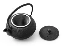 Das Arare-Muster ist ein echter und nach wie vor sehr beliebter Klassiker bei Teekannen und Tetsubin aus Gusseisen. Die Teekanne Arare von OIGEN ist eine besonders elegante Erscheinung. Innen ist die Teekanne emailliert, sie verfügt über ein herausnehmbares, rostfreies Teesieb aus Edelstahl. Gefertigt wird diese Teekanne von erfahrenen Handwerkern im Nanbu Teki Verfahren bei der Manufaktur OIGEN, eine der besten Adressen für Tetsubin, Teekannen und Kochgeschirr aus Gusseisen. Bei richtiger Handhabung hält diese Teekanne ihren Tee deutlich länger warm als herkömmliche Teekannen aus Glas oder Keramik. Die Füllmenge ist so bemessen, dass sie für 2-3 Teebecher oder ca. 4 Teeschalen ideal dimensioniert ist.