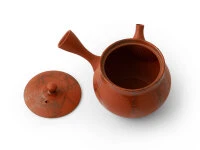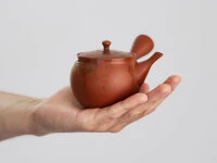 begeistert Kenner mit ihrer zierlichen Anmut aber auch mit der Geschmacksverbesserung für den Grünen Tee, die diesen Kannen eigen ist. Gyokko ist einer der bekanntesten Meister dieser Kunst. Er verwendet ausschließlich natürlichen, mineralstoffreichen Ton aus Tokoname, der bei hohen Temperaturen gebrannt werden kann. Die schöne Teekanne wiegt ca. 180 Gramm und fasst ungefähr 200 ml, ideal für 1-2 Personen. Die ziegelroten Teeschalen Muji Shu von Meister Gyokko passen wunderbar zur Mokake Shu.