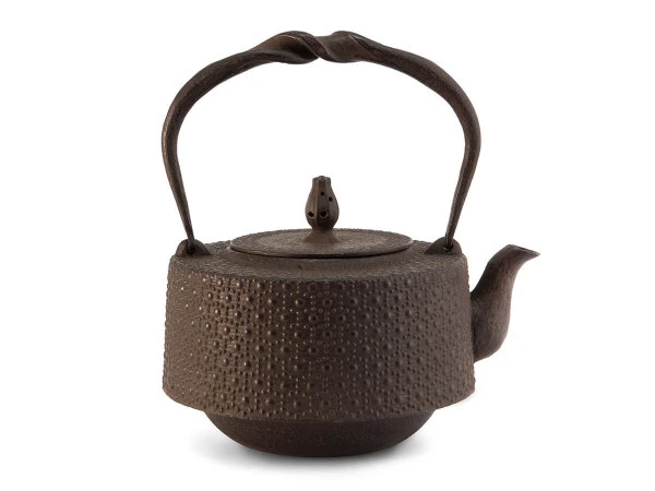 Sehr edler, von Hand gefertigter japanischer Nanbu-Tetsubin (iron kettle) von Torayama Studios, Morioka. Geeignet für Induktion und alle anderen Herdarten. Eine echte Rarität auf dem europäischen Markt. Sein traditionelles, feines Arare Design erzählt japanische Geschichte. Sehr hohe, kontrollierte Materialqualität. Der Tetsubin wird in über 60 Arbeitsschritten aufwändig von Hand beim bekannten, kleinen Hersteller Torayama hergestellt. In solchen Tetsubin kochen die bekanntesten Teemeister das Wasser bei der Teezeremonie, aber auch zur alltäglichen Zubereitung von grünem Tee werden in Japan und bei Tee-Enthusiasten in Europa solche Tetsubin verwendet. Das Teewasser gewinnt aus dem Kessel Eisen und verbessert den Geschmack des Tees.