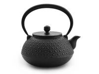 Original japanischer, traditioneller Wasserkessel (Nanbu-Tetsubin) von Iwachu, Morioka. Geeignet für Elektro- und Gasherde (kleine Flamme), nicht für Induktionsherde. Auf Grund der traditionellen Original-Muster, der sehr hochwertigen Handarbeit und der streng kontrollierte Materialqualität von Iwachu gehören diese Wasserkessel zu den weltweit beliebtesten überhaupt. Über 60 Arbeitsschritte sind notwendig, um dieses meisterliche Produkt zu fertigen. Teemeister kochen darin das Wasser für den Grünen Tee, da es den Geschmack des Wassers und des Tees verbessert. Auch für Kaffee-Wasser ist das Wasser aus Tetsubin hervorragend geeignet. Bei längerem Kochen wird das Wasser mit etwas natürlichem Eisen angereichert, das vom menschlichen Körper sehr gut aufgenommen werden kann.